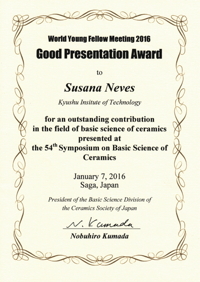 北九州国際会議場にて開催された第1回化学に基づくバイオ技術に関するアジアシンポジウムにおいて,D1のSusana Nevesさんが優秀ポスター賞を受賞しました。