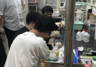 韓国・東明大学医用工学専攻の学部3年生5名が当研究室を訪問され,研究内容の紹介や研究設備見学を行いました。