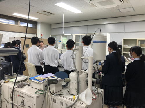スーパーサイエンスハイスクール(SSH)の一環として,明治学園高校2年の生徒12名に本研究室へお越し頂き,材料科学の実習を行いまし た。有機-無機 複合材料の作製や力学的特性評価,天然の複合材料である貝殻の電子顕微鏡観察を体験して頂き,材料科学に対する理解を深めて頂きました。併せ て,国際協力 機構(JICA)プロジェクトで来日中の,オセアニア地域の理数系教員20数名が実習の様子を視察しました。